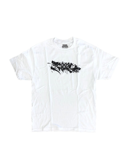 Black print on white tee. Made of 10 oz 100% cotton. Designed and printed in San Diego.